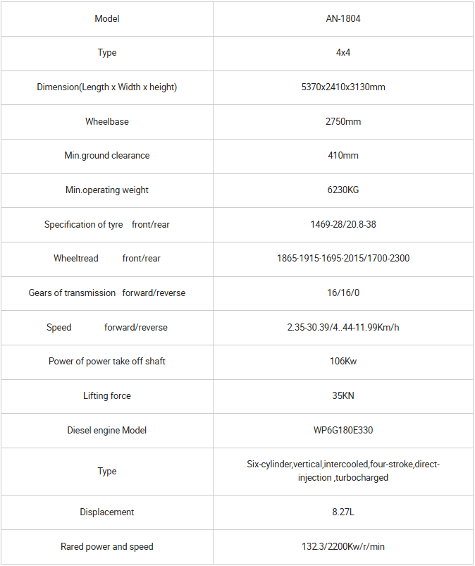 While some tractors are still equipped with four-cylinder engines, this 180 HP tractor has used the advanced six-cylinder engine to offer smoother operation, lower noise levels, and higher torque. It provides powerful traction, especially at low RPMs. So if you have high-level requirements for precise control, AN1804 can be your first choice.