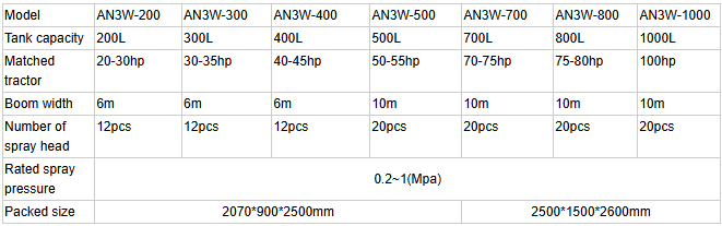 • The ANON tractor boom sprayer uses imported fan-shaped nozzles for good atomization and drift prevention.